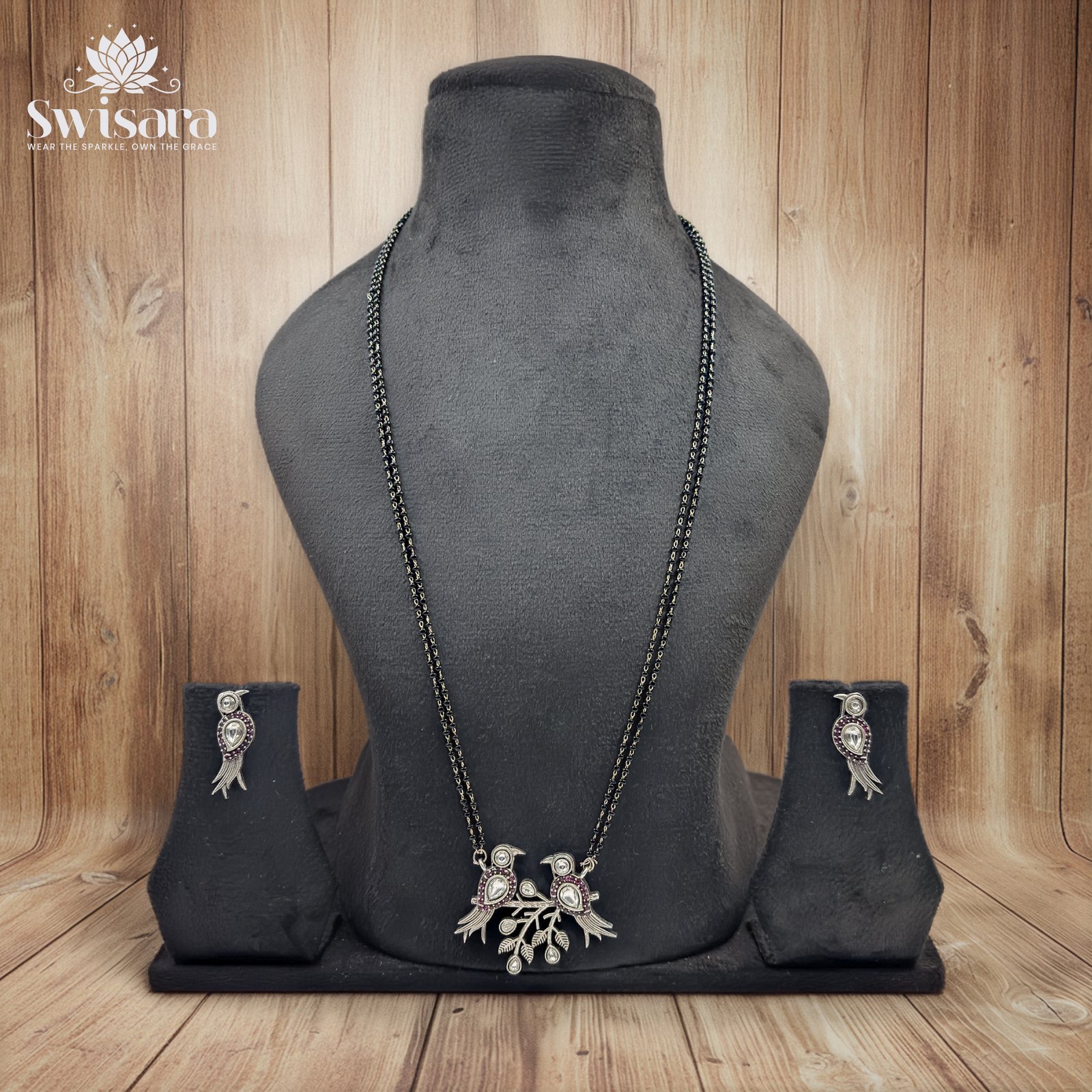 Antique Bird Motif Oxidised Necklace and Earrings Set
