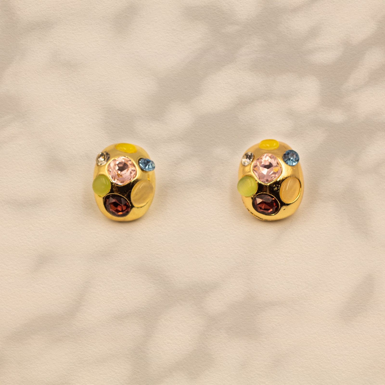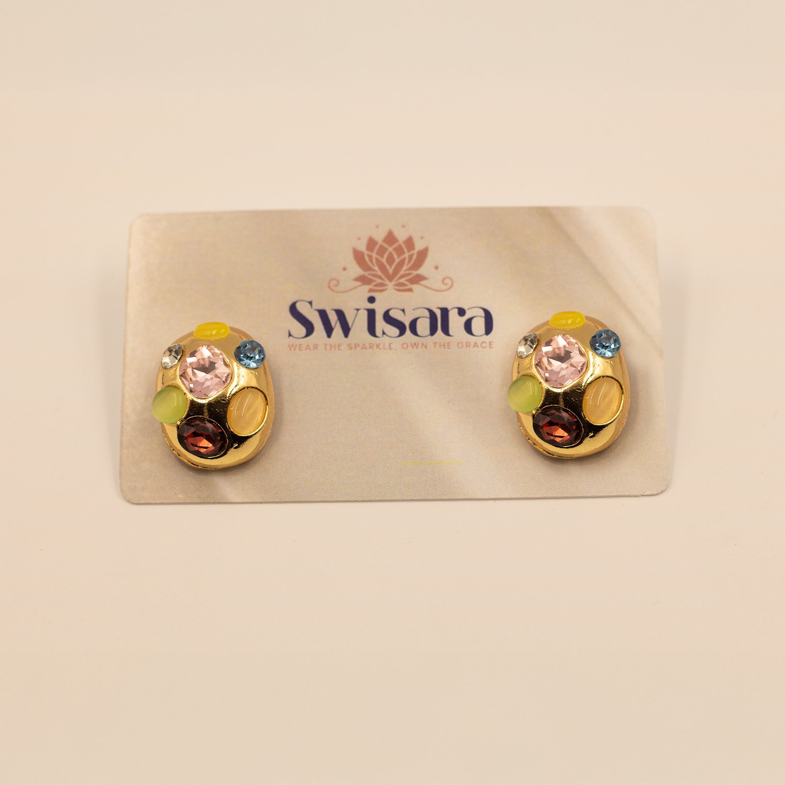 Playful, bold, and full of life — the Color Carnival Stud Earrings from Swisara are a celebration of vibrance and individuality. Featuring a medley of colorful stones set on a radiant golden base, these earrings bring a joyful splash of color to any look. Perfect for those who love to experiment with fun fashion or need that pop of personality in everyday wear.