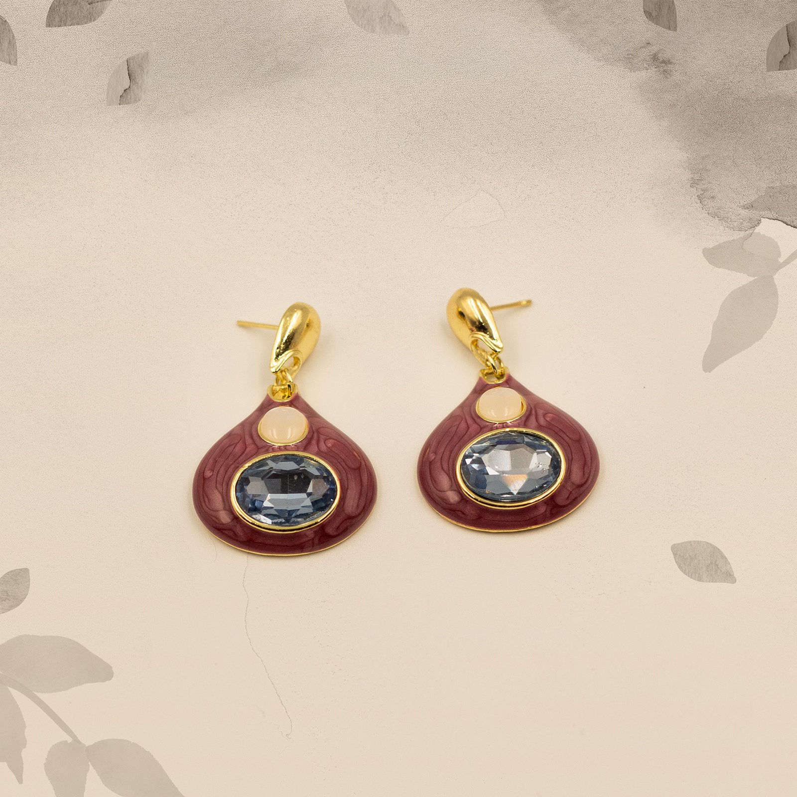 Swisaraβs Mocha Twilight Teardrop Earrings offer a rich blend of sophistication and poise. Set on a smooth mocha-brown teardrop base with delicate marbling, these earrings feature a soft blush accent and a faceted twilight blue stone at the center. Golden hardware adds an elegant finish, ideal for both festive and formal occasions.