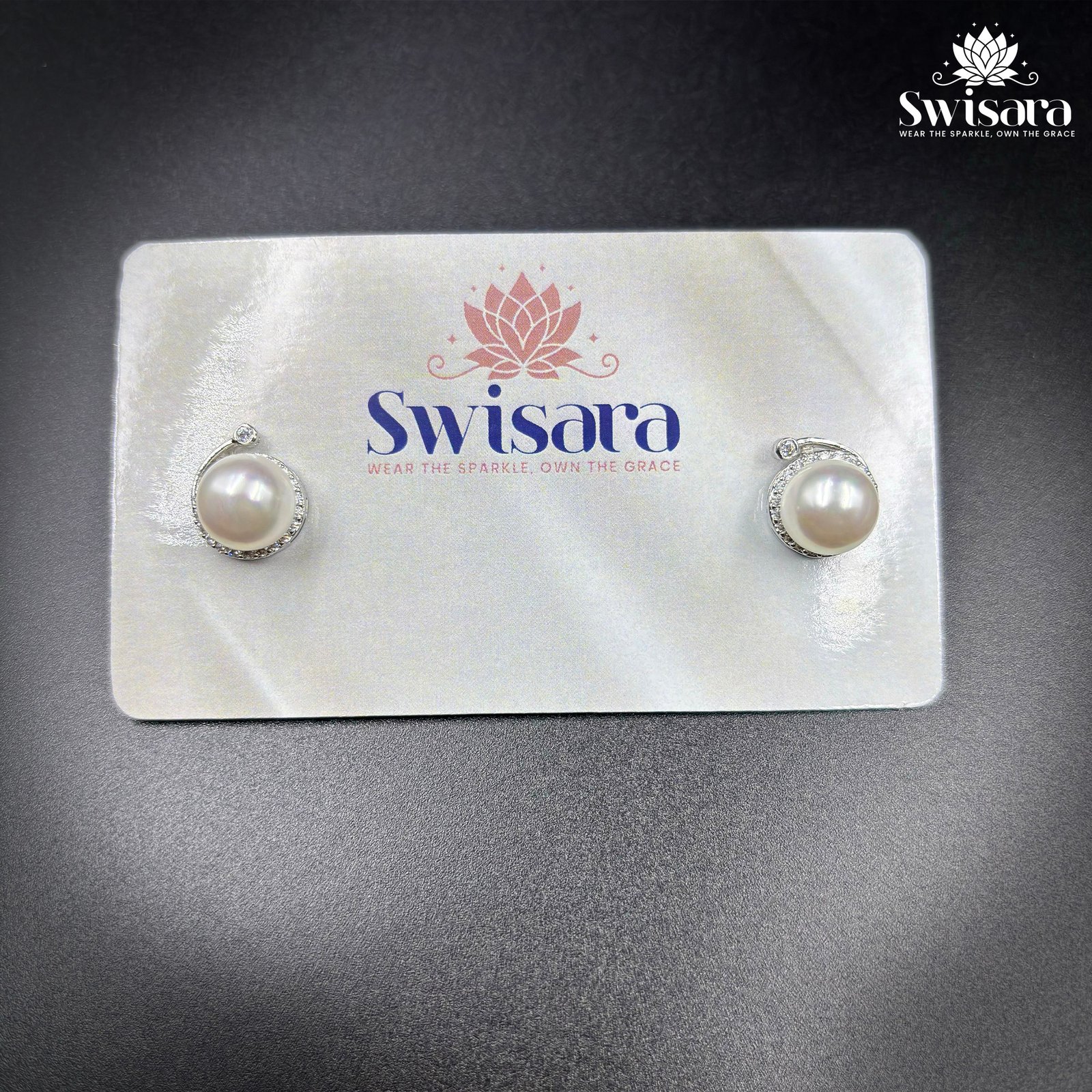 Elevate your everyday elegance with the Swisara Whisper Pearl Curve Studs. These graceful earrings feature luminous faux pearls nestled within a curved silhouette of sparkling white CZ stones. The swirl-like design offers a soft, feminine charm — perfect for daily wear or special occasions.